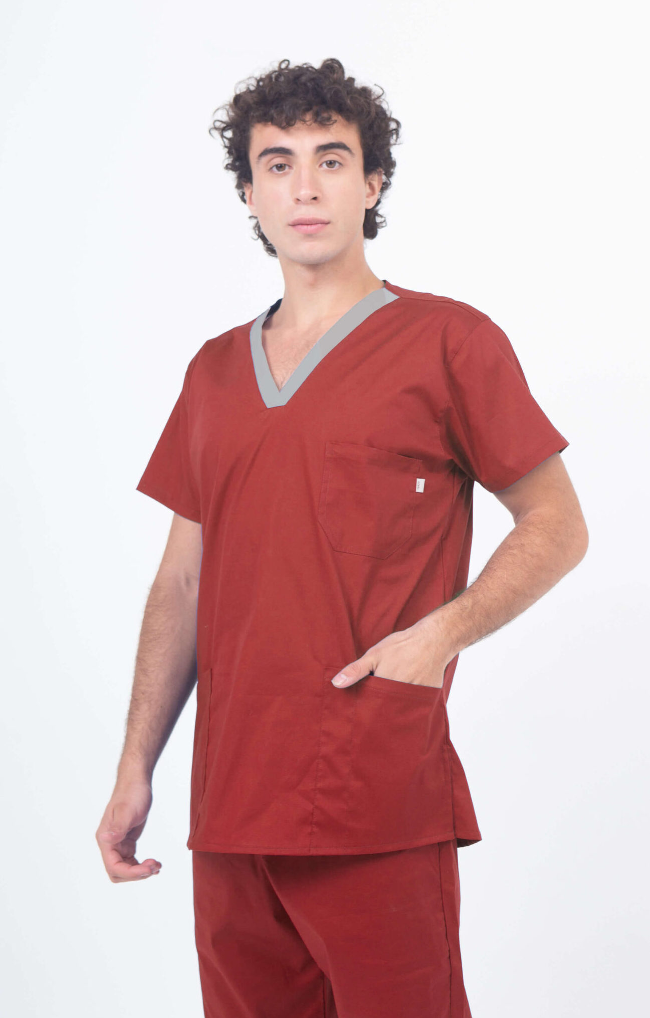 TELA: Es otra variante de las telas tradicionales de ambo. Resistente a los lavados, este textil no es anti Mancha pero si es de fácil lavado. No tiene textura, es suave al tacto y es una tela lisa de grosor intermedio. Es elastizada.