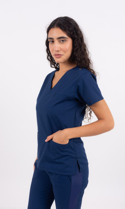 Chaqueta cuello MAO en ARCIEL Azul Marino, con BROCHES metálicos, de tela GRAFIL que tiene mayor absorción y durabilidad. Esta chaquetilla está especialmente pensada para enfermería o farmacéutica ya que es abierta; que tiene un calce entallado con pinzas en la espalda, el acceso es con broches metálicos escondido en una vista interna la cual también protege la piel con el roce de los mismos, además tiene un refuerzo de friselina. No nos olvidemos de sus dos bolsillos diagonales amplios con un vivo a contratono en ARCIEL Azul Marino que también lo aplicamos en el bolsillo superior plaque y en los contornos de la manga.