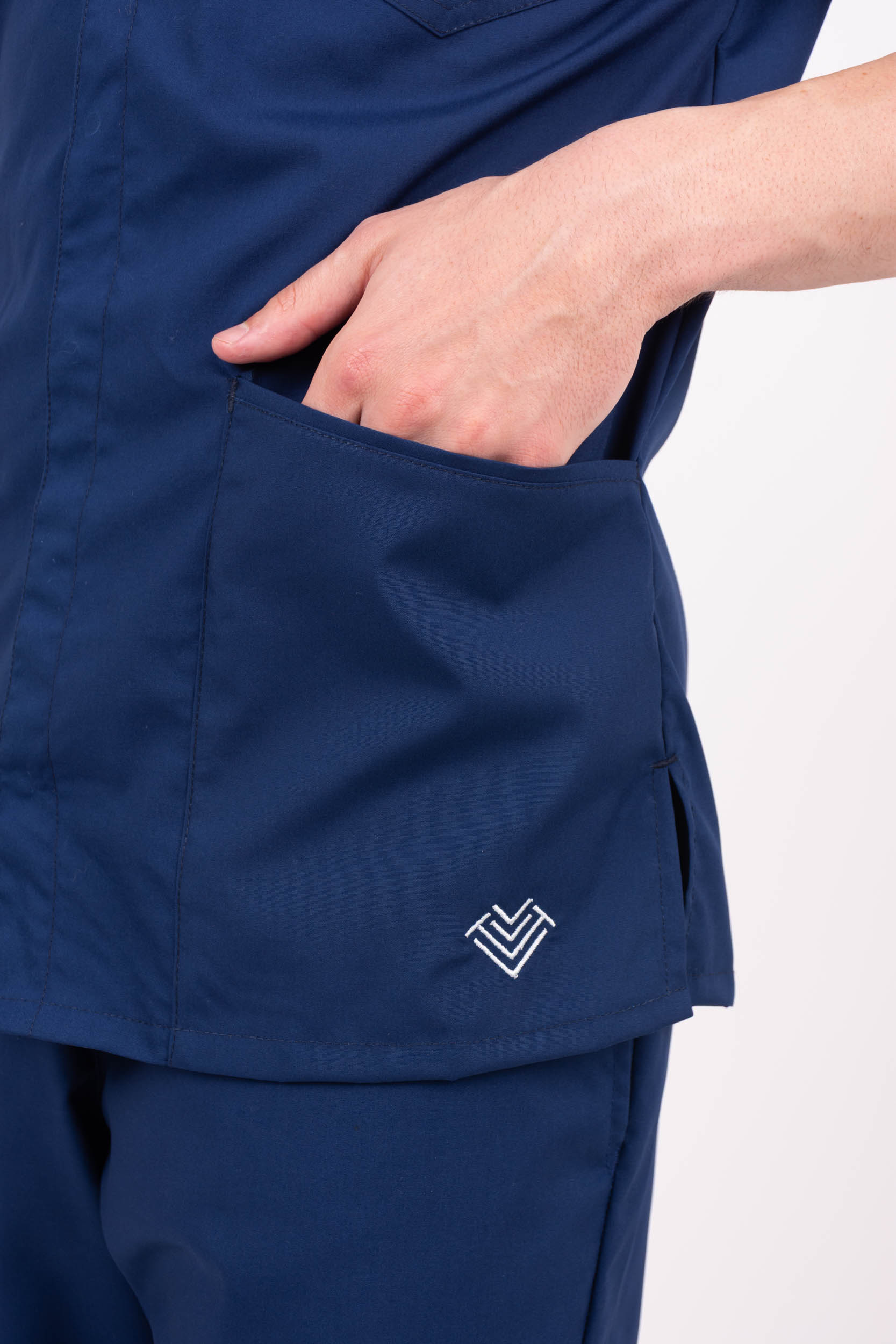 Chaqueta cuello MAO en ARCIEL Azul Marino, con BROCHES metálicos, de tela ARCIEL que tiene mayor absorción y durabilidad. Esta chaquetilla está especialmente pensada para enfermería o farmacéutica ya que es abierta; que tiene un calce entallado con pinzas en la espalda, el acceso es con broches metálicos escondido en una vista interna la cual también protege la piel con el roce de los mismos, además tiene un refuerzo de friselina. No nos olvidemos de sus dos bolsillos diagonales amplios con un vivo en ARCIEL Azul Marino que también lo aplicamos en el bolsillo superior plaque y en los contornos de la manga.