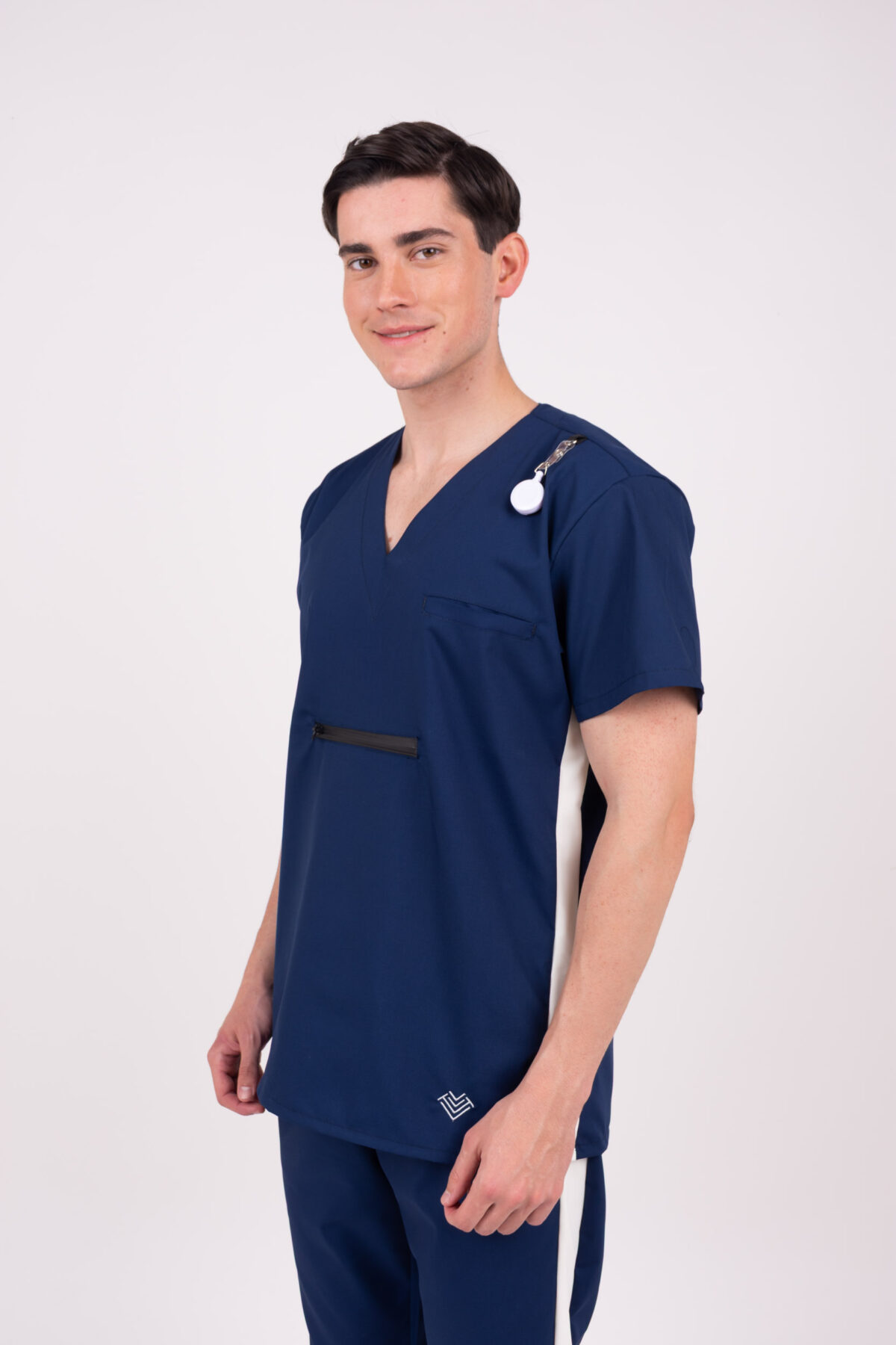 Chaquetilla SPORTY en tela ARCIEL de gran calidad, durabilidad y comodidad, escote en V con vista interna, contiene un bolsillos ojal superior y un nuevo bolsillo ojal con cierre impermeable ambos con atraques de seguridad al tono, además con cordón porta credencial en el hombro de máximo agarre. Cuenta con recortes laterales de LYCRA DE SEDA permite mejor absorción, secado rápido de la transpiración y otorga mayor flexibilidad en los movimientos sumado a unas aberturas para aportar mayor confort y adaptación a tu cuerpo. También tiene el logo corazón bordado a contra tono.