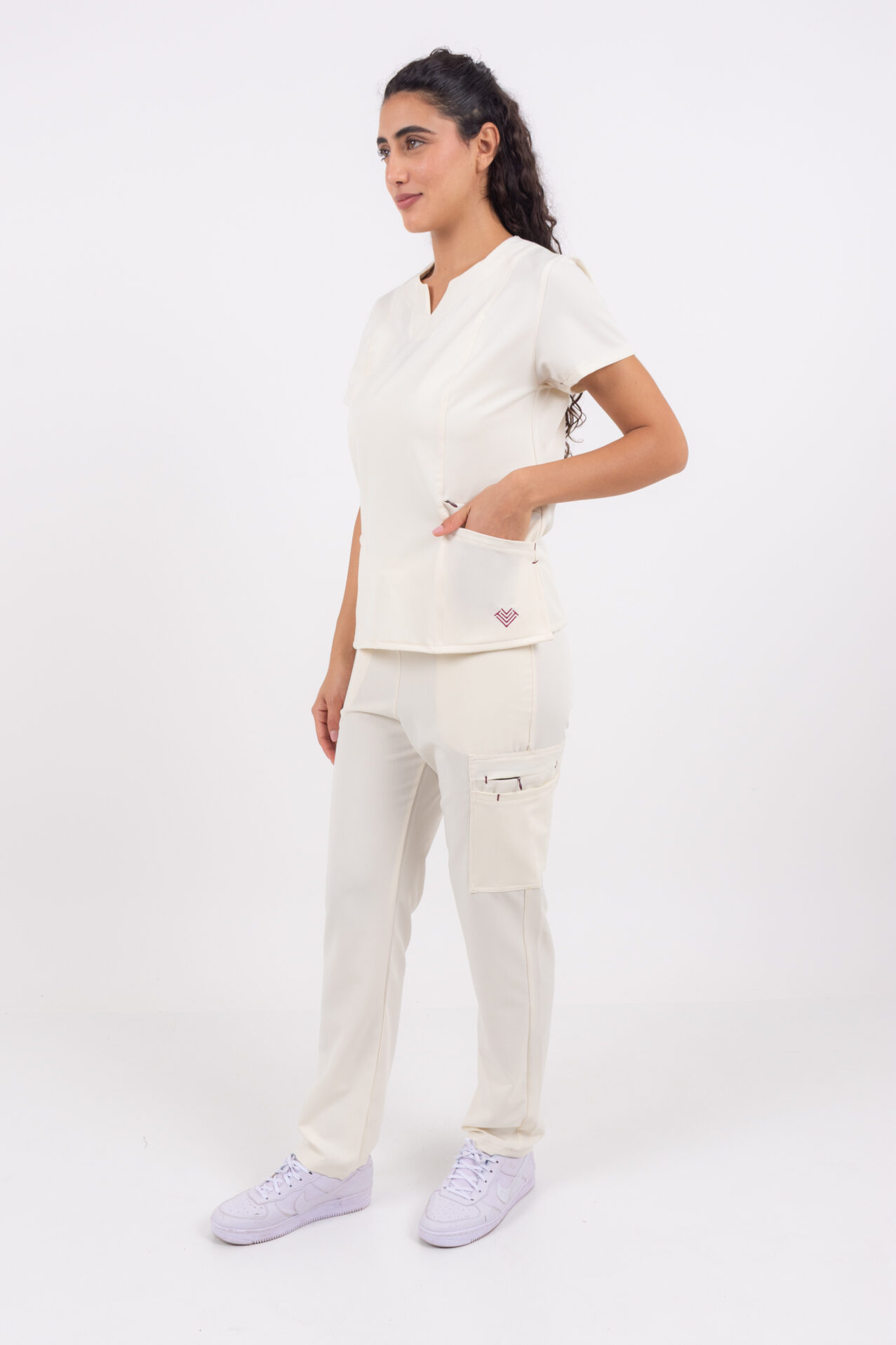 Chaqueta de diseño moderno y profesional, en Tela Tecno Spandex CR9, con cuello Americano y bolsillo oculto con cierre que aporta una estética limpia y funcional. Su calce cómodo con cortes delanteros se adapta al cuerpo, mientras que el ajuste trasero regulable permite definir el entalle y estilizar la silueta. Cuenta con atraques (costuras de refuerzo) en puntos clave que garantizan mayor durabilidad, junto a terminaciones prolijas pensadas para el uso profesional diario.
