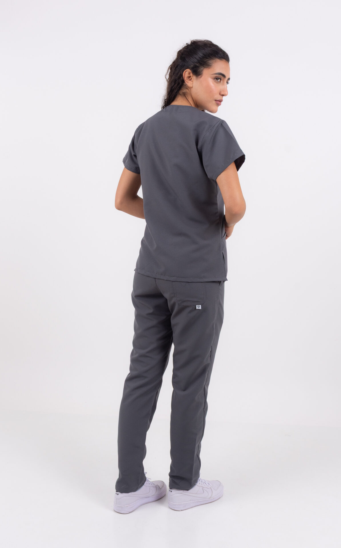 Chaqueta confeccionada en tela técnica liviana, de corte CLÁSICO con calce cómodo y relajado que brinda libertad de movimiento durante toda la jornada, escote en V con tira de cuello a contratono que aporta un detalle distintivo, contiene un bolsillo superior estilo plaque y dos bolsillos amplios inferiores con corte diagonal. Presenta mangas cortas de caída recta y terminaciones prolijas, con una silueta limpia y profesional. También cuenta con abertura en los laterales tipo tajo para mejorar la amplitud en la cadera. Incorpora atraques (costuras de refuerzo) en todas las zonas críticas de la prenda, aportando mayor resistencia y durabilidad en el uso diario.