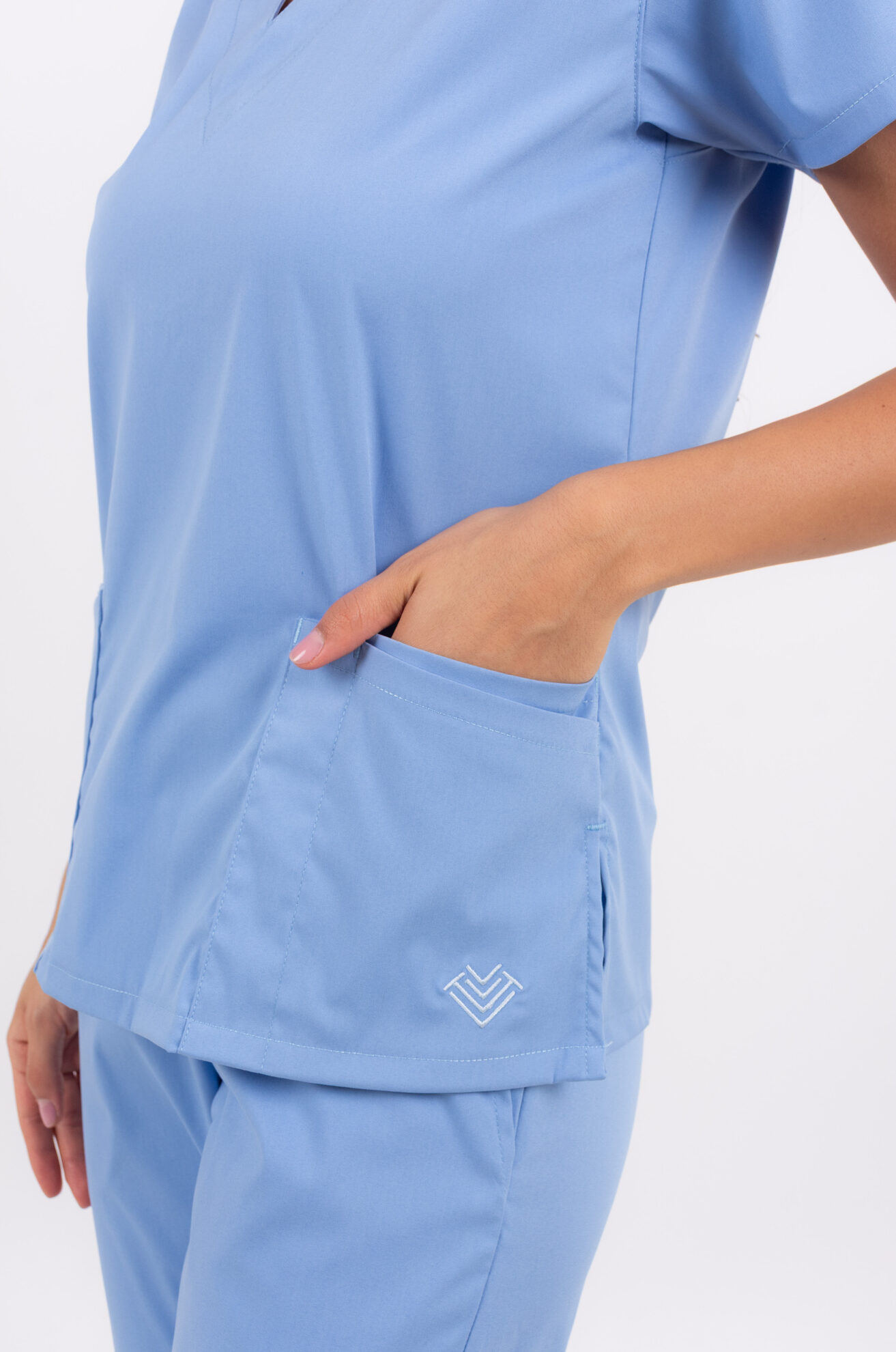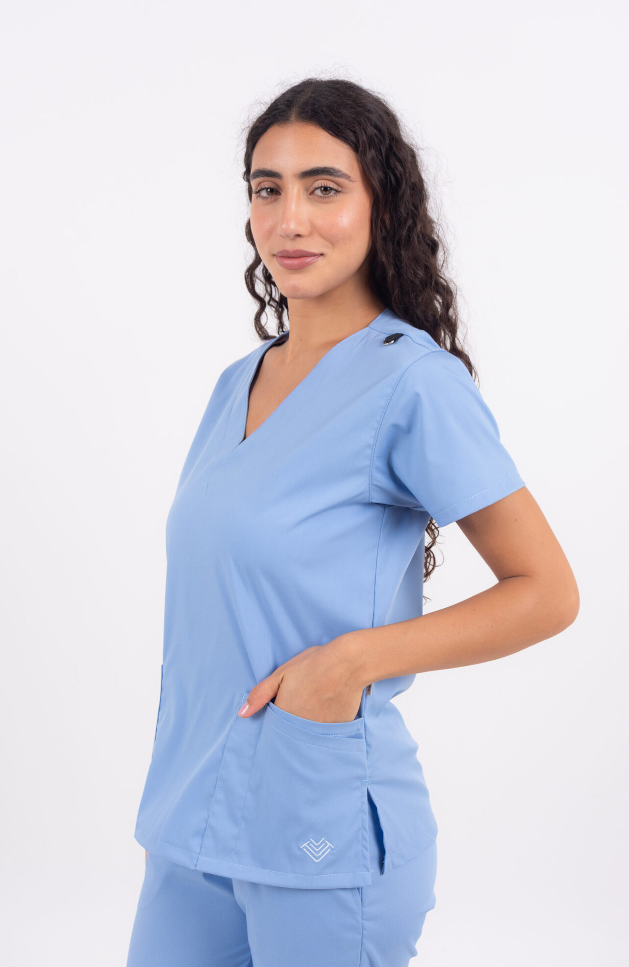 Chaqueta LISA en tela CORE Spandex™. Calce firme, elasticidad controlada y resistencia superior para jornadas largas en escote en V, con un cordón porta credencial en el hombro, cuatro bolsillos amplios y un divisorio lapicero.