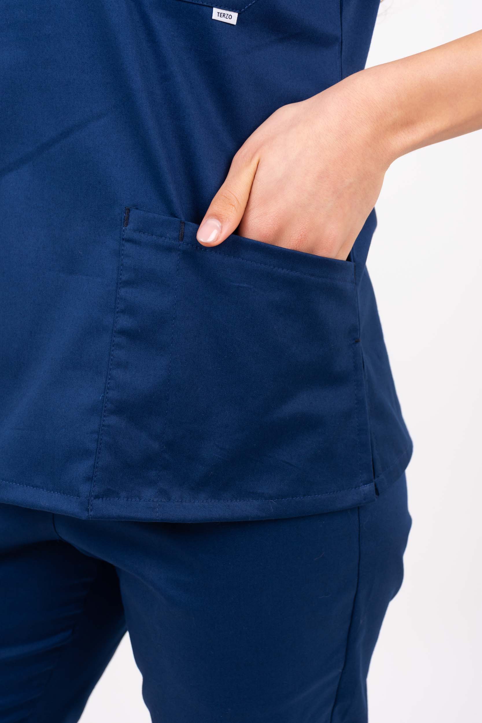 Chaqueta LISA TELA Core Spandex™. Calce firme, elasticidad controlada y resistencia superior para jornadas largas , en escote en V, con un cordón porta credencial en el hombro, cuatro bolsillos amplios y un divisorio lapicero.