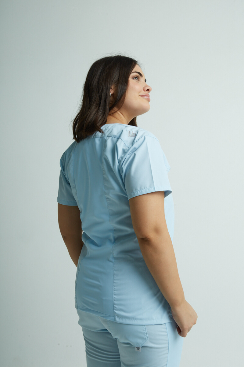 Chaquetilla levemente ceñida SHAPY en tela ARCIEL que brinda comodidad y resistencia por su calidad y durabilidad, con escote en V y vistas internas, contiene dos bolsillos estilo ojal inferiores y un bolsillo ojal en el pecho, ambos con atraques de seguridad a tono. Le sumamos cordón porta credencial en el hombro para que no pierdas. Además tiene un recorte en la espalda de LYCRA DE SEDA la cual permite mejor absorción, secado rápido de la transpiración y otorga mayor flexibilidad en los movimientos.